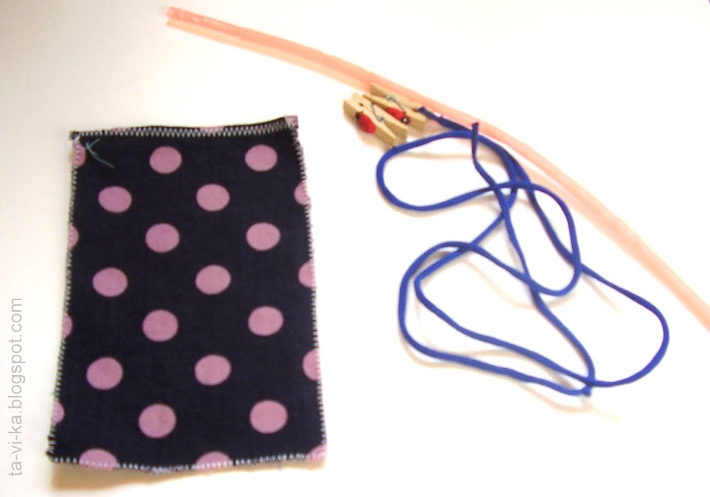 Я с любопытством пошла смотреть, что же она будет делать. А Катя совершенно серьезно взяла фотоаппарат, расстелила на полу лист белой бумаги для фона, разложила на ней свои материалы: тряпочку, две прищепки, коктейльную трубочку и шнурок, и стала все это фотографировать. Потом делала свой "гамак" и этапы тоже фотографировала. Все как положено при подготовки мастер-класса :)))