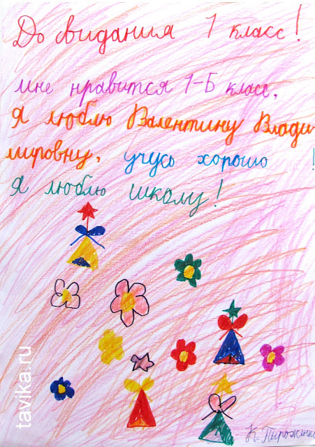 УдалитьПоздравляю вас с Катей с окончанием первого класса! Вы большие молодцы! ))))